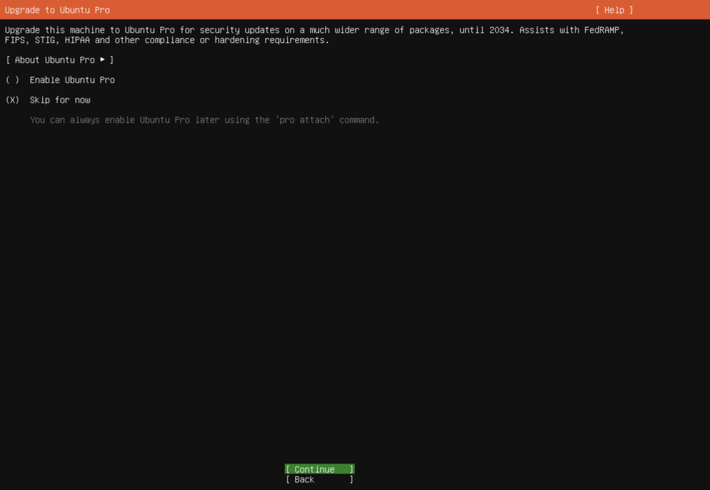 - Pada upgrade to ubuntu pro pilih skip for now lalu lanjutkan