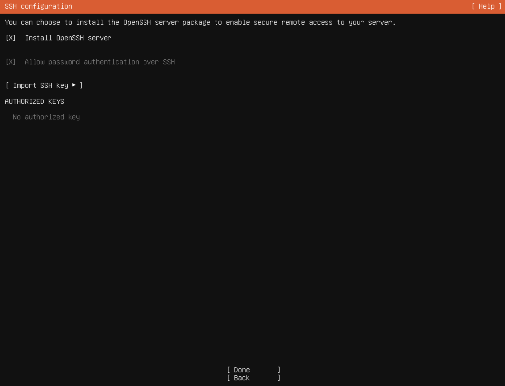 - Selanjutnya Pada SSH Configuration pilih Install OpenSSH Server lalu lanjutkan