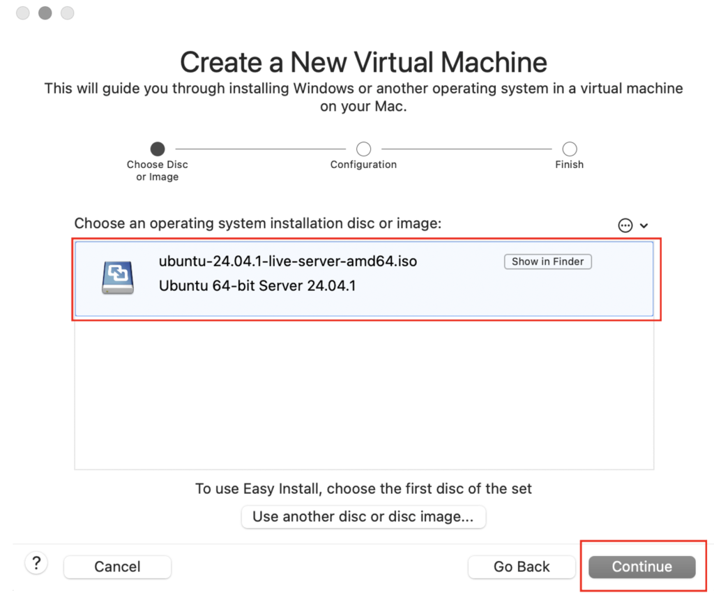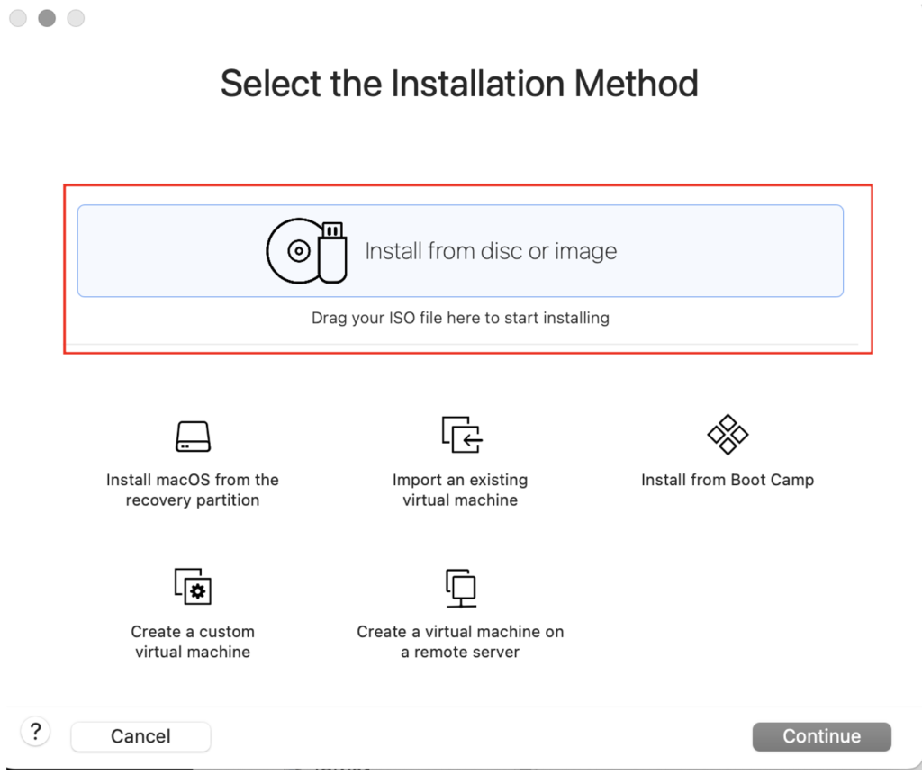 Setelah itu Pilih Install from disc or image dan klik Continue.