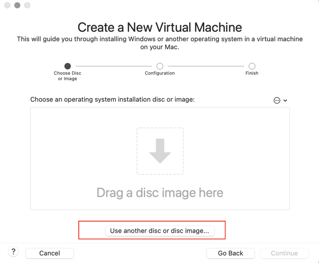 Selanjutnya klik Use another disc od disc image, lalu pilih file ISO yang sebelumnya telah selesai di download.